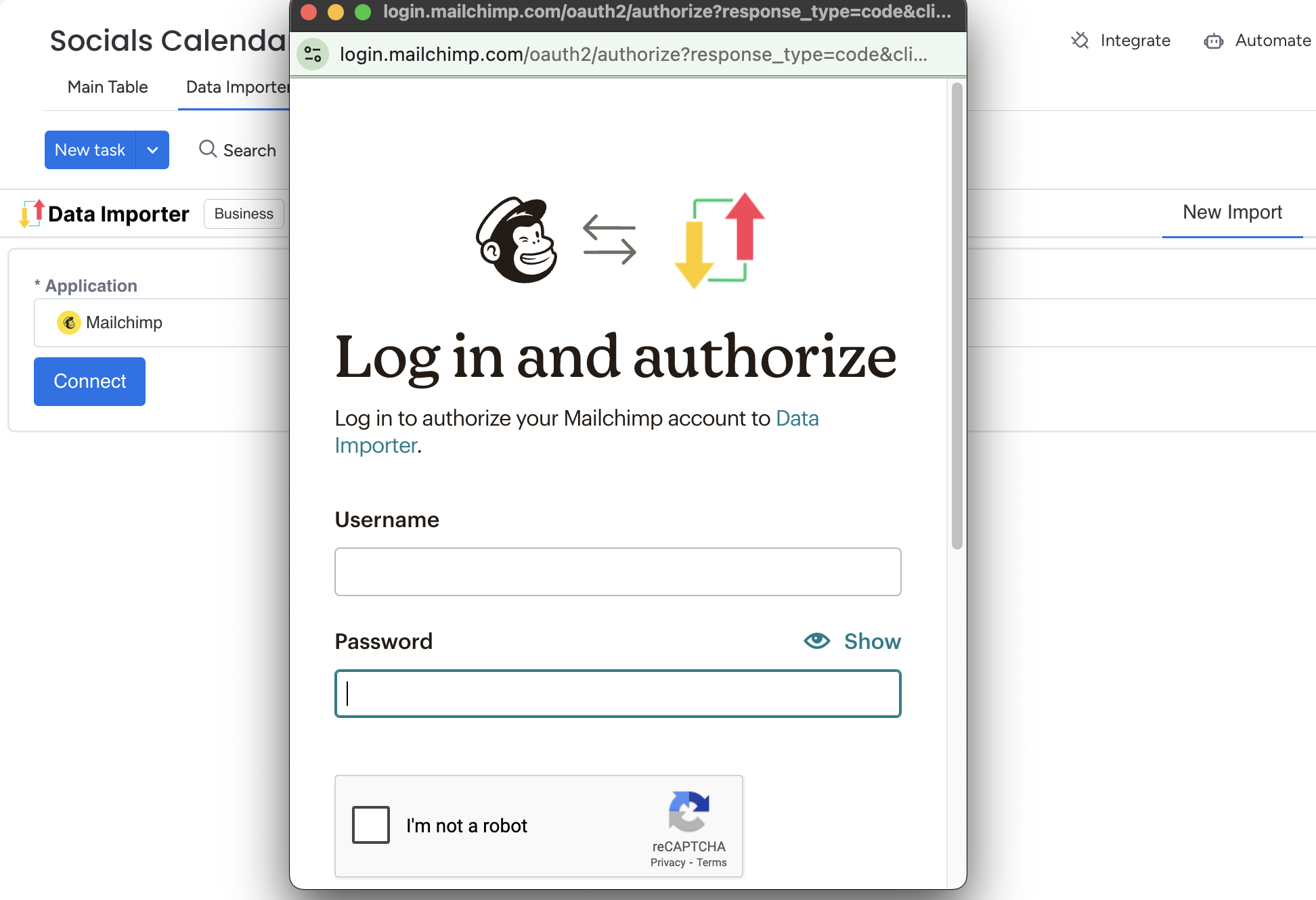 1. Once you’ve connected your Mailchimp account, you’ll be redirected back the Data Importer app.